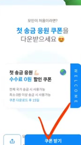 신규 회원은 첫 송금 수수료 무료 쿠폰 다운로드 가능